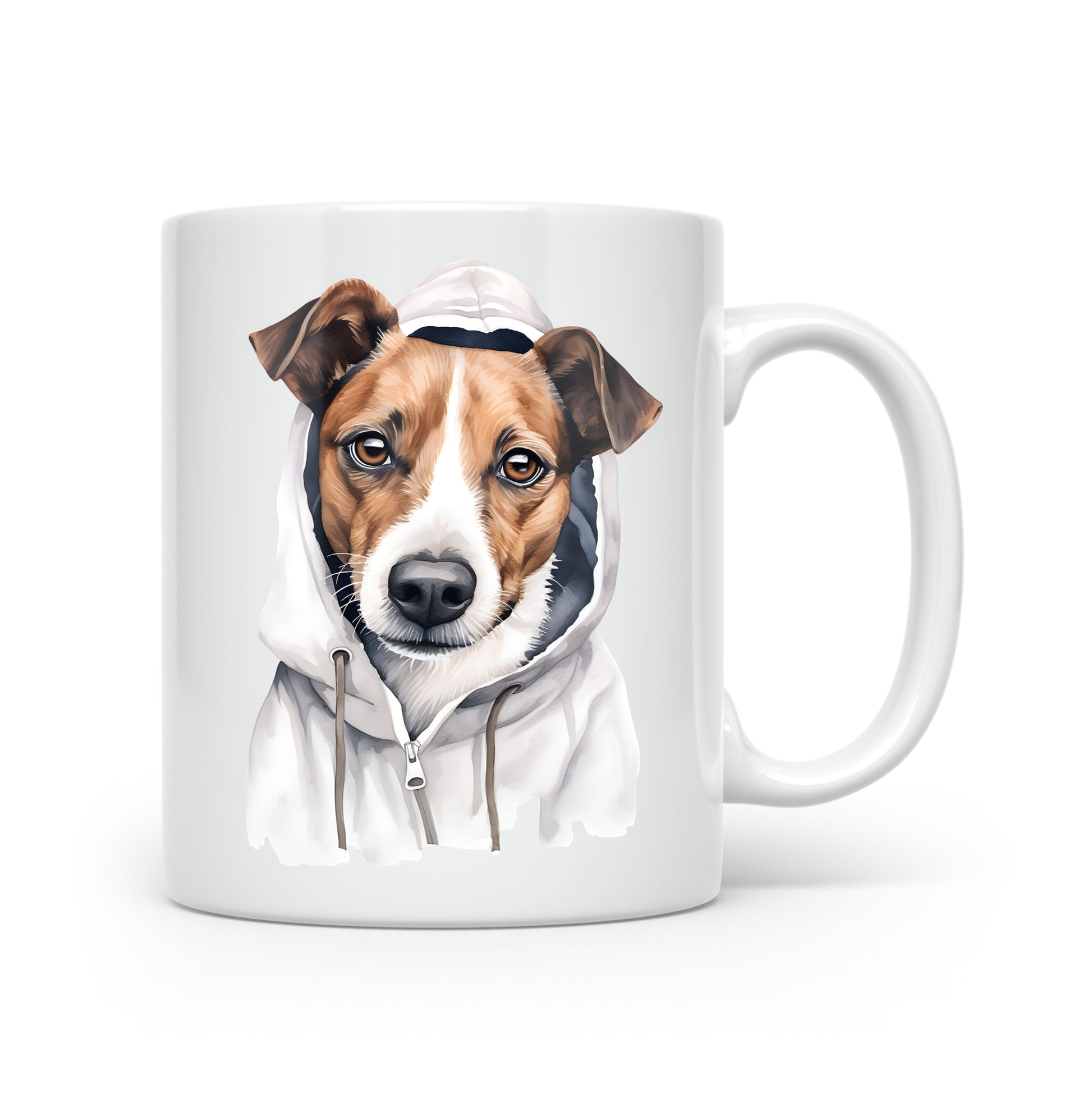 Dogs in Hoodies Mug – Ceramic & Bone China - 3 Sizes - Jack Russell