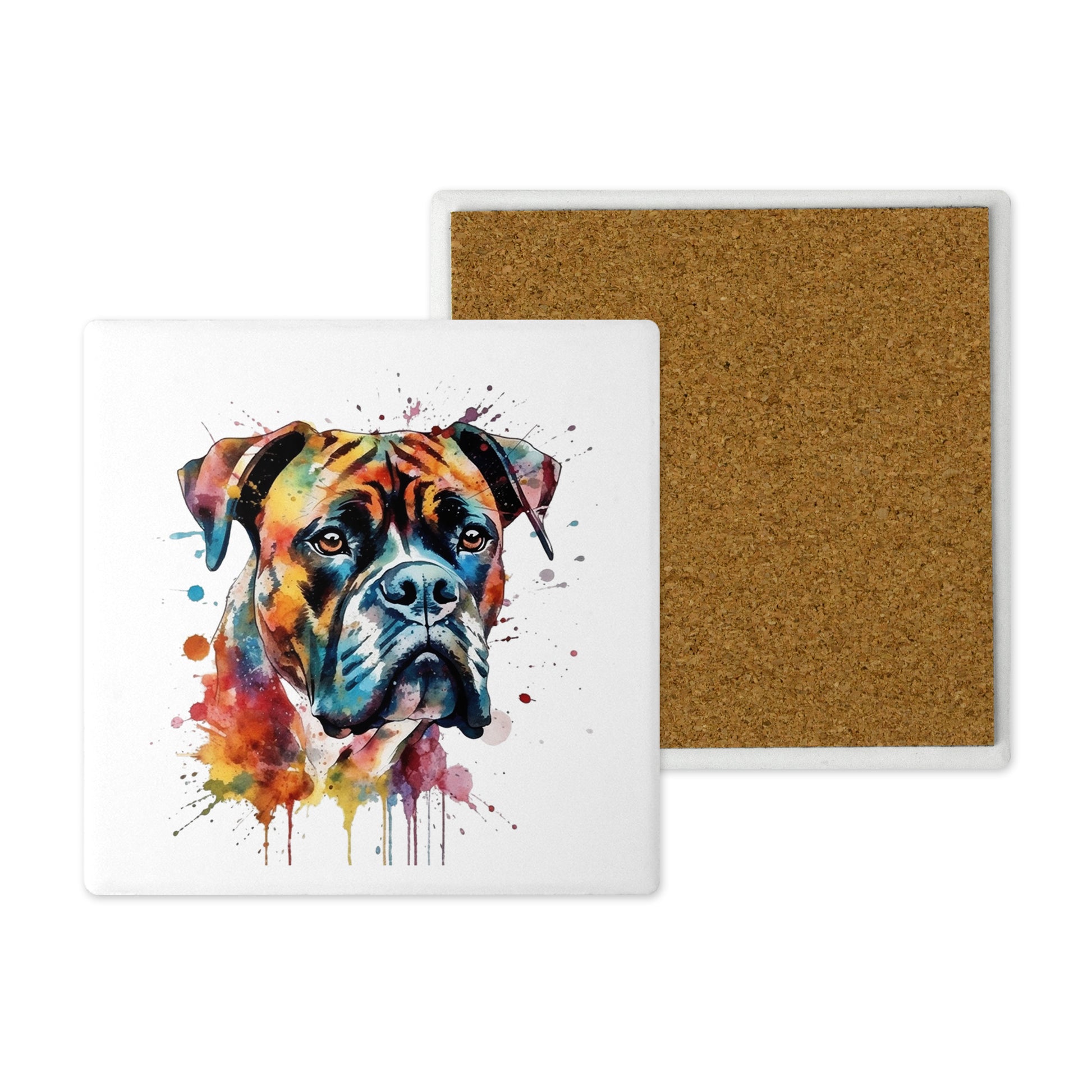 Popular Dog Breeds - Ceramic Coaster – Beautifully Hand Printed Design 10x10cm - Boxer
