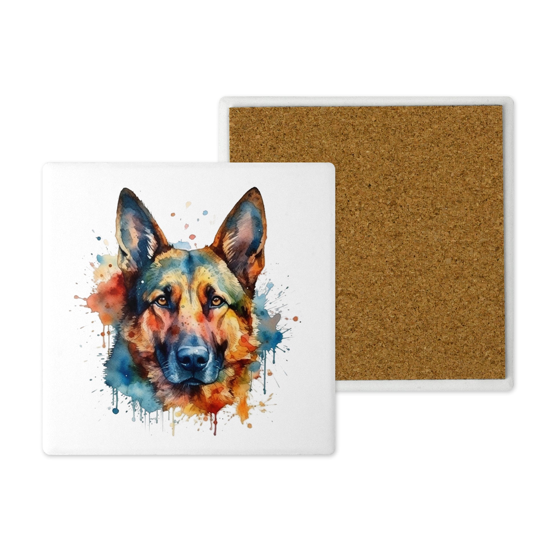 Popular Dog Breeds - Ceramic Coaster – Beautifully Hand Printed Design 10x10cm - German Shepherd